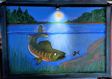 I painted this 24" x 36" walleye cartoonish fish for a Friend of Mine, an avid